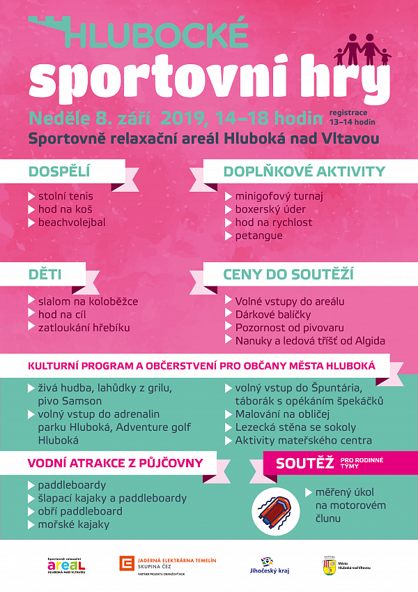 Sportovní diciplíny pro děti, dospělé i seniory, kulturní program a zábava určená pro hlubocké občany vč. městských částí.